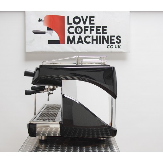 This Valina machine is finished in metallic black and chrome panels, and, as you can see, presents itself in lovely condition. Very few marks to be commented on, just some light scratches from use. Please see extensive photos. This machine is great if you need to serve takeaway as it has raised heads for tall 16oz cups but also pull out trays for shorter cups and espresso.